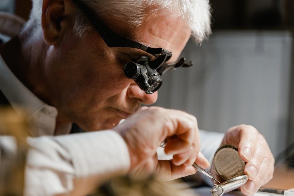 PDF guides illustrate the delicate process of pallet adjustment, ensuring proper engagement with the escape wheel for a consistent tick. They cover techniques for cleaning pivot points and removing corrosion that can hinder function.