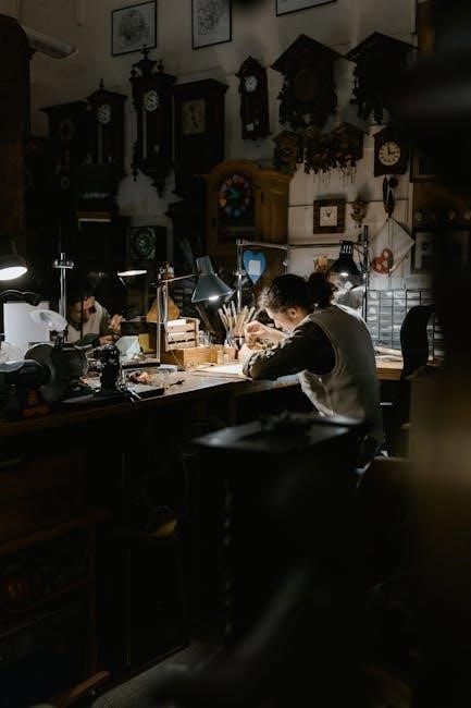 Repair focuses on the mainspring – inspection for fatigue or breakage is crucial. The manual emphasizes cleaning the gear train thoroughly, removing old lubricant and debris. Pallet adjustment is also covered, ensuring proper engagement with the escape wheel. PDF guides often include exploded diagrams illustrating each stage, aiding in understanding the clock’s operation and facilitating successful repairs. Proper lubrication with clock-specific oils is paramount for longevity and accurate timekeeping.